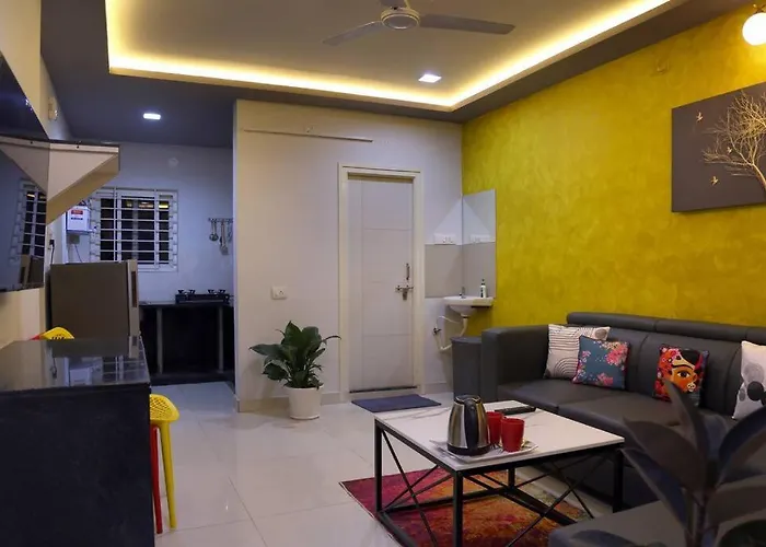 A 46 m²-es apartman HITEC City körzetben található, 35 km-re a Radzsiv Gandhi nemzetkozi repülőtértől. A Qutub Shahi sírok továbbá 7 km-re van az apartmantól.